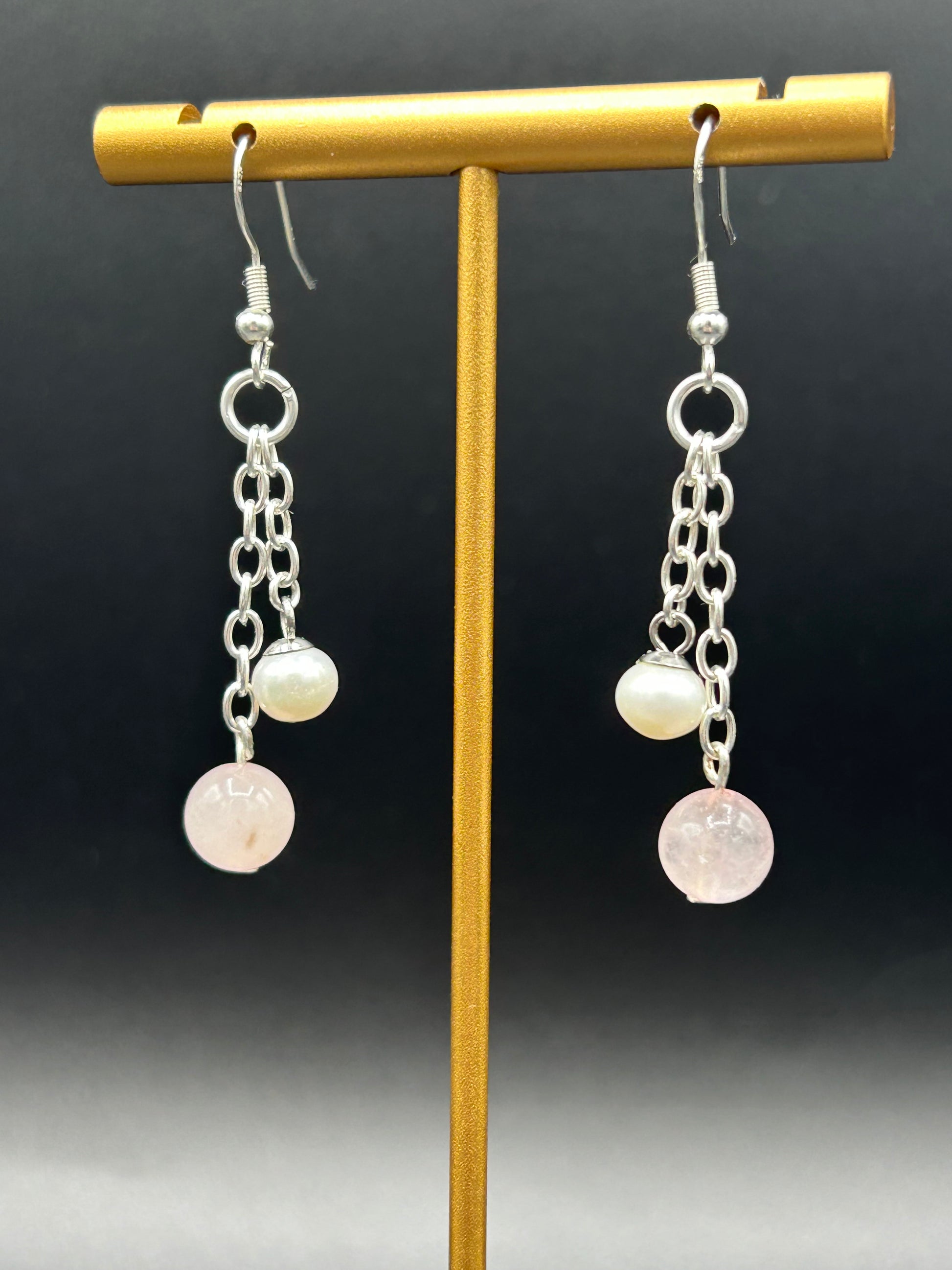 Ces boucles d’oreilles Rose & Perle allient la tendresse du quartz rose et l’élégance intemporelle des perles de culture.