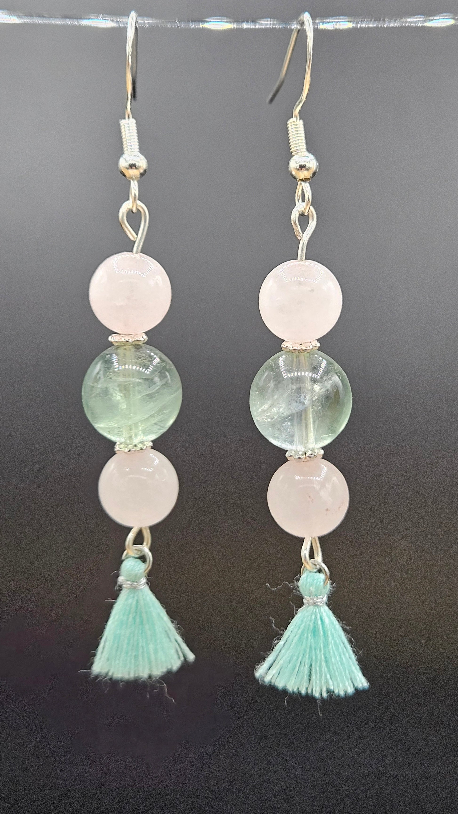 Boucles Douce Harmonie en fluorite verte et quartz rose