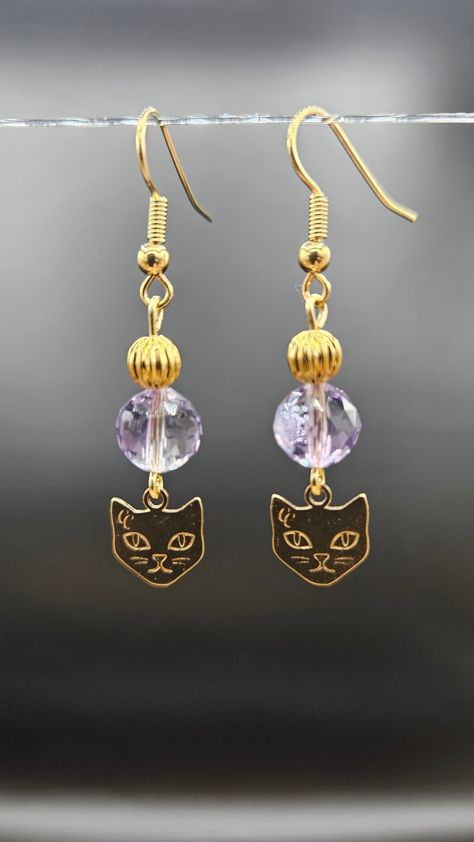 Les Boucles Mystère Félin signées Colomba Créations invitent à un voyage intérieur, entre douceur et lumière. Une fluorite mauve facettée diffuse son éclat apaisant, évoquant la sérénité et la clarté d’esprit. Connue pour ses vertus de concentration et d’harmonie, cette pierre naturelle révèle ici toute sa profondeur dans un jeu de reflets violets et translucides. Au bas de la ligne, la tête de chat stylisée – breloque signature Colomba dorée à l’or fin – incarne la protection, l’intuition et la tendresse féline, symboles chers à la maison.