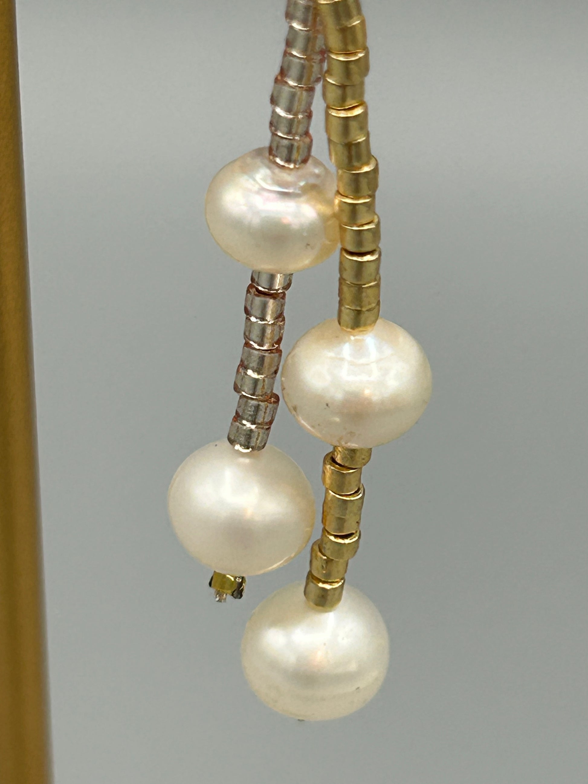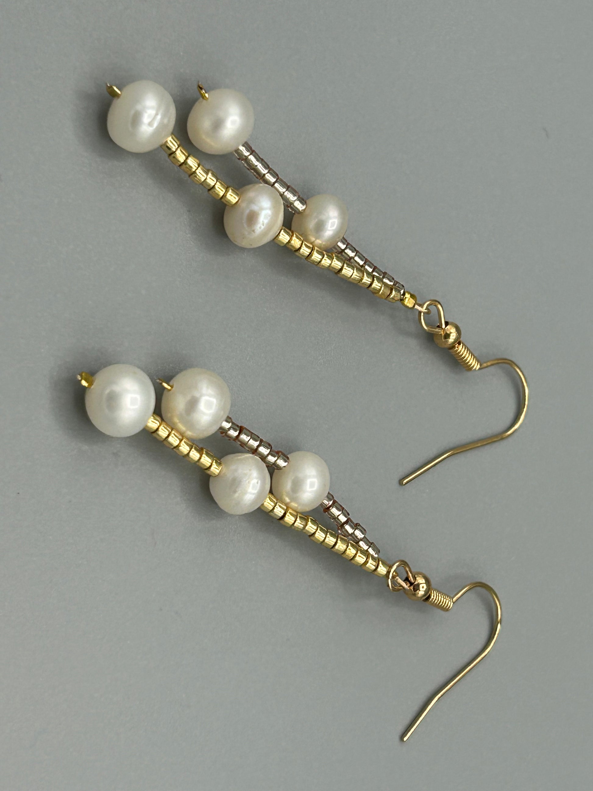 Elles associent de véritables perles de culture d’eau douce à de fines perles Miyuki doré et doré champagne, pour un rendu à la fois chic et moderne.