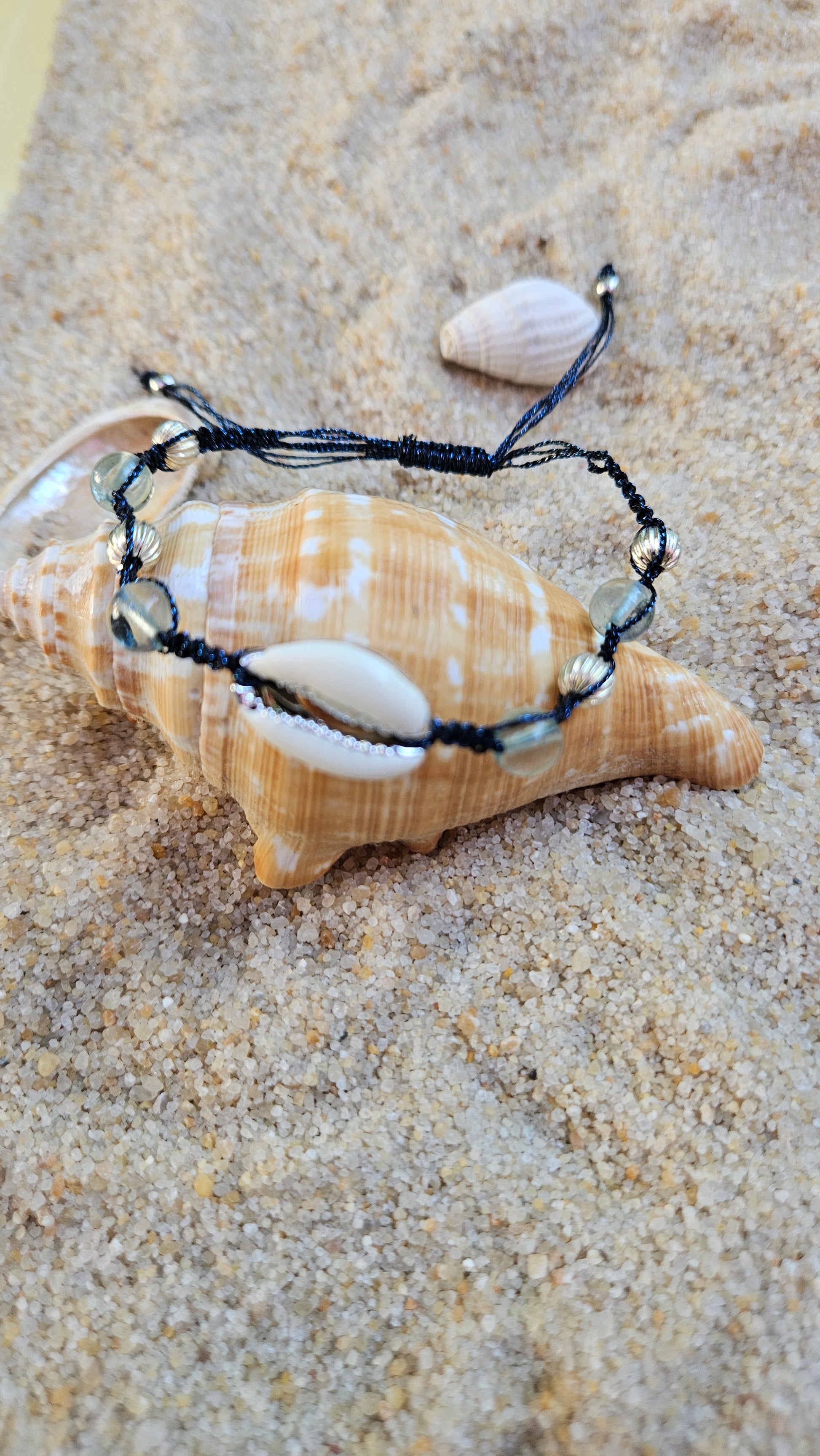 Ce bijou artisanal unit des matériaux naturels soigneusement choisis : perles de fluorite translucides, coquillage cauri blanc, coton tressé en macramé et touches de métal. Chaque élément dialogue avec l’autre, entre transparence minérale et texture organique. La finition coulissante a été pensée pour la fluidité du geste, tandis que les proportions fines soulignent un style délicat, fidèle à l’univers d’Élégance minérale. La dimension réglable s’adapte à votre poignet pour un porté confortable, du matin jusqu’au soir.
