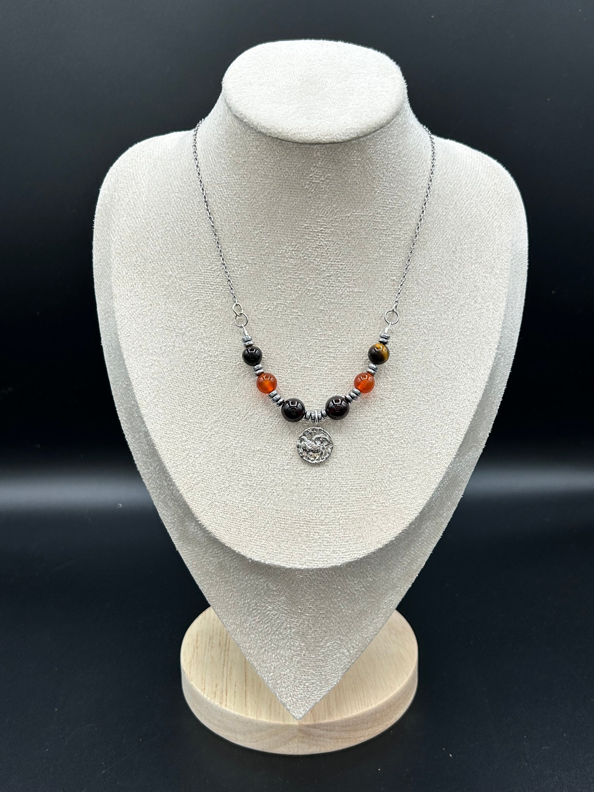 Pierres naturelles : cornaline, œil de tigre, hématite