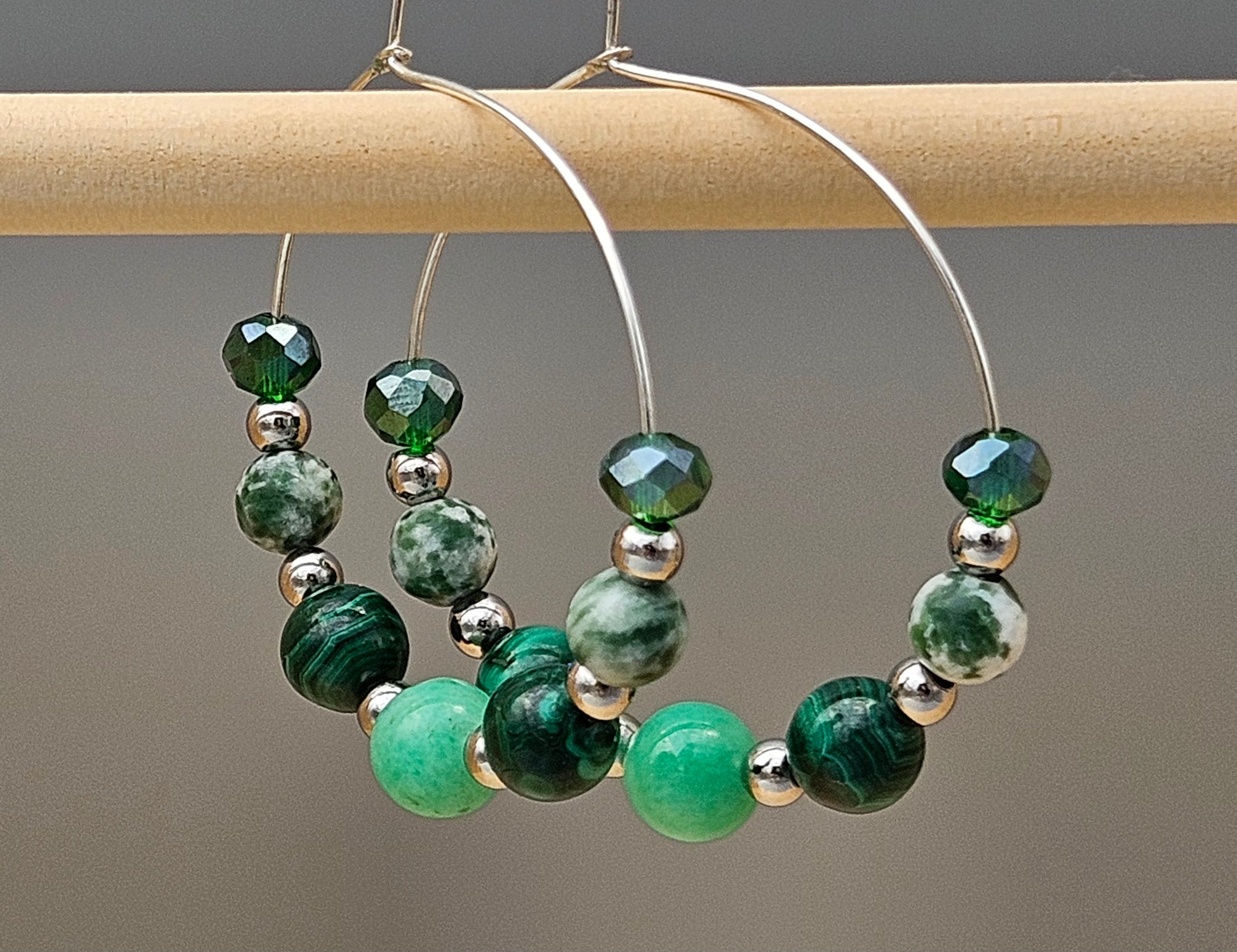 Créoles vertes en malachite et serpentine, éclat bohème et élégance naturelle
